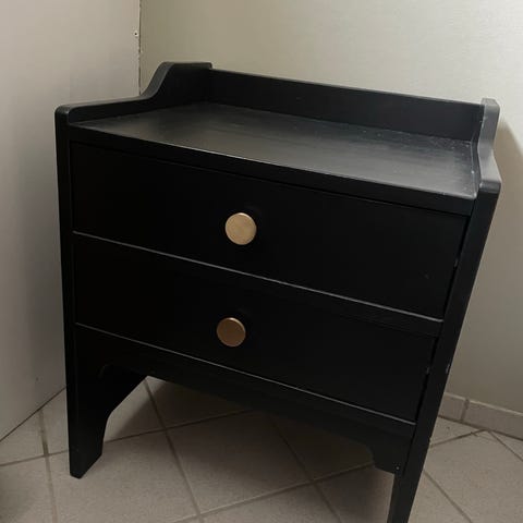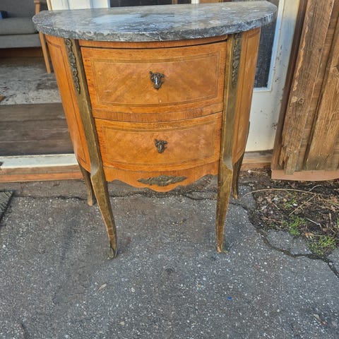 Den fineste lille kommode/sengebord med skal, skuffe og marmorplade.