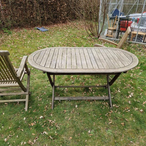 Sættet er oprindeligt udført i sort plast med fletlook, men er bleget i solen over adskillige år og fremstår derfor nu grå - derfor gratis.