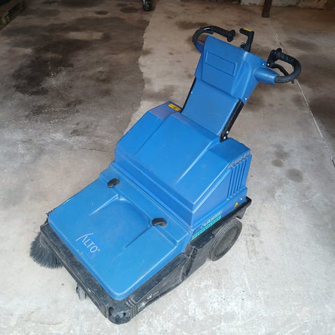 Maskinen er en gå-bagved model med håndtag og betjeningsknapper på styret. Den har frontmonteret sidebørste og indvendige cylindriske børster til opsamling af snavs. Egnet til fejning af større gulvarealer, f.eks. værksteder, lagerhaller eller gårdspladser.