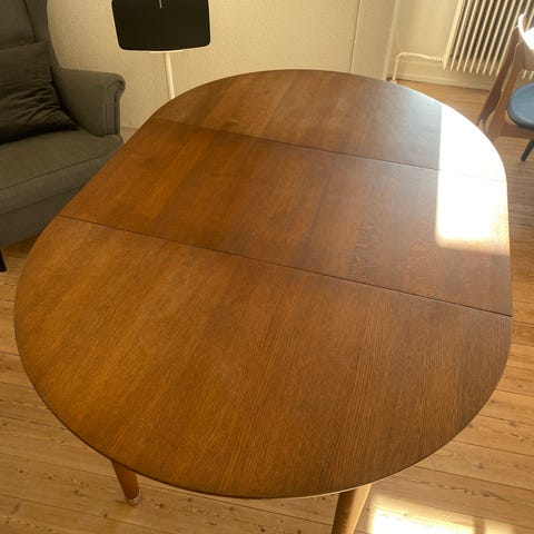 Rigtig flot rundt spisebord på 160 cm sælges. Massivt egetræsbord, med sorte ben. Er udgået af Ilvas sortiment.