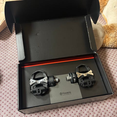 Jeg er skiftet til et "Spider PowerMeter" og derfor skal sælge mine elskede Favero pedaler. Hvis du leder at level op dit cykling game her i år, så skal du naturligvis have et par watt pedaler. Som også kan ses på billederne, så er det et one-sided power meter (med opgradering mulig til two-sided!). Favero laver de absolut bedste pedaler og det må man også sige er tilfældet med disse. Kom og få fat i dem før din nabo gør! 😉