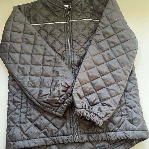 Unisex sommerjakke i sort. Passer til ca. 6–7 år. Let og praktisk til skiftende vejr. Jakken er i meget god stand uden synlige tegn på slid.