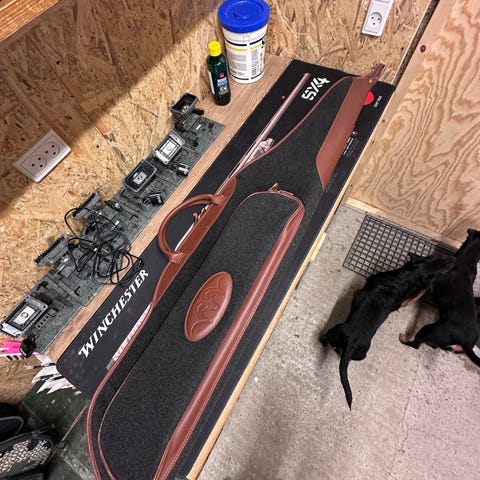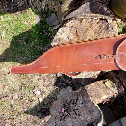 Det grønne foderal er af mærket Hunting og har plads til 2 våben. Det måler 127 cm i længden og er 20 cm bred.