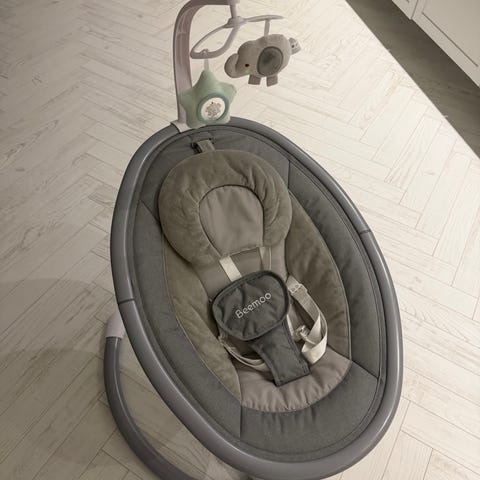 This baby rocker is in great condition and has been well cared for in a smoke-free home. It features an intelligent rocking system with five adjustable speed settings and a timer that can be set to 15, 30, or 60 minutes. The seat can rotate a full 360°, and the backrest offers two reclining positions for added comfort. For added entertainment, the rocker comes with 16 built-in melodies and 5 calming nature sounds. Additionally, it has a motion-sensing feature that automatically starts the rocking function when your baby wakes up and begins to move.
