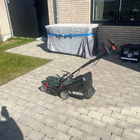 Bosch AdvancedRotak 780 plæneklipper. Elektrisk model med angivet lydniveau på 89 dB ifølge typeskiltet. Velegnet til klipning af græsplæner i have og udendørsarealer. Modeloplysninger og tekniske data fremgår af mærkepladen på maskinen.