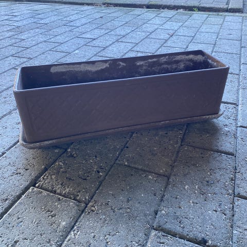 Rusted jern altankasse i rektangulær form. Kassen er fremstillet i jern med rustet overflade i brunlig nuance. Den har opbuk på siderne, som kan fungere som kant eller håndtag. Velegnet som plantekasse eller til opbevaring udendørs, fx på altan, terrasse eller i have