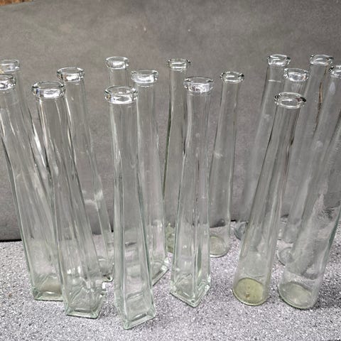 5 vaser i klar glas , højde fra 15 ... 18 cm