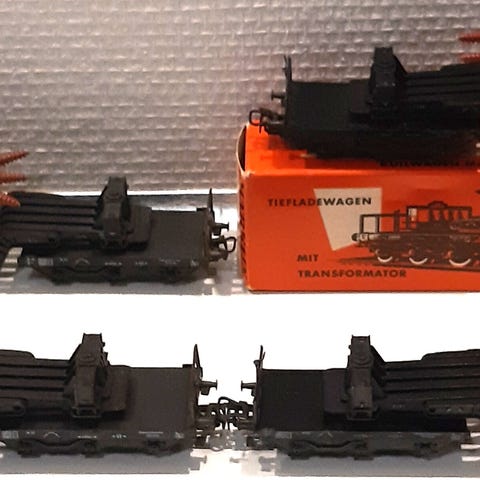4 stk. Märklin sværdtransport vogne i flot stand. Den ene er i pæn original æske. Der er 2 stk. transformervogne samt 2 stk. med kasser. 500 kr for alle 4 stk. Ja til mobile pay og sender gerne.