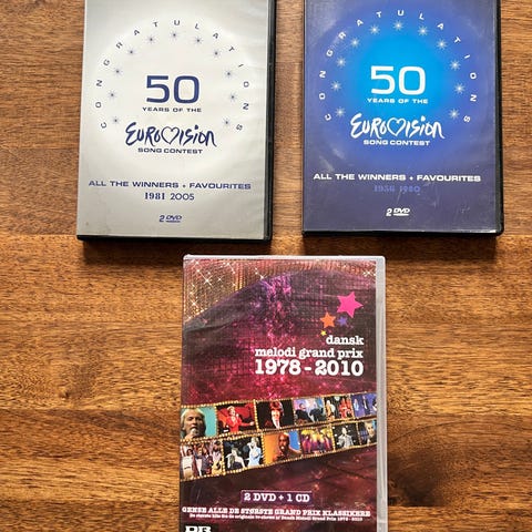 Eurovision Song Contest 50 Years dvd med musik fra konkurrencens historie. Udgaven består af et 2-disc dvd-sæt med titlen "50 Years of the Eurovision Song Contest – All the Winners + Favourites". Indeholder vindere og udvalgte favoritter fra forskellige årgange, herunder perioderne 1956–1980 og 1981–2005, samlet i et officielt jubilæumsudvalg. Velegnet til afspilning på standard dvd-afspillere. Prisen er 200 kr for de 2 dvd box set.