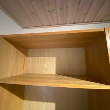 Jeg har 2 store reoler, 1 lille og en skuffe.
