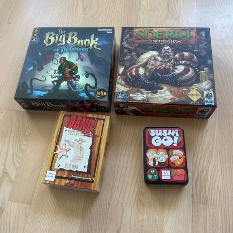 Slugfest Games Red Dragon Inn 2 og Red Dragon Inn 3. Sættet består af to selvstændige spil i Red Dragon Inn-serien, hvor spillerne styrer hver deres fantasy-figur på kroen efter eventyret. Spillet indeholder kort, markører og spillevejledning til flere spillere. Velegnet som kortbaseret selskabsspil for familie og venner, hvor de to bokse kan spilles hver for sig eller kombineres for flere karakterer og variation i spillet.