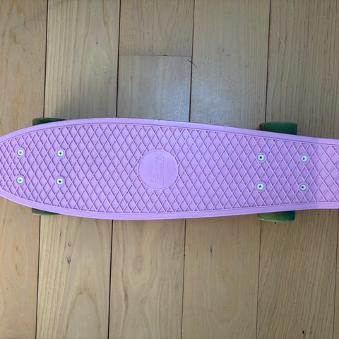 Penny skateboard i plast i pink farve. Brættet har rillet overflade for bedre fodfæste og er udstyret med truck og bløde hjul, der egner sig til cruising på jævne underlag. Velegnet til kortere ture, transport og fritidskørsel.