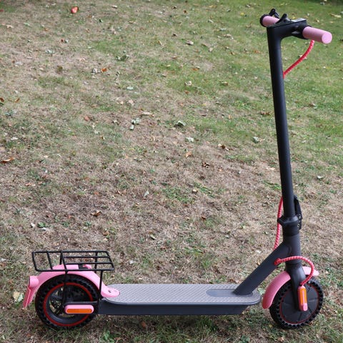 Motoren er på 24V og det kan køre ca. 9km i timen. Styret kan nemt foldes ned, så det let kan være i bilen eller campingvognen.