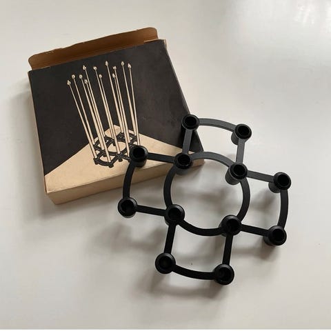 Stage til kertelys, Aida Kronborg, RETRO stage til 12 stk tynde lys - kertelys, blomsterpinde eller tapers. Kan også bruges til de små lys man sætter på en lagkage.