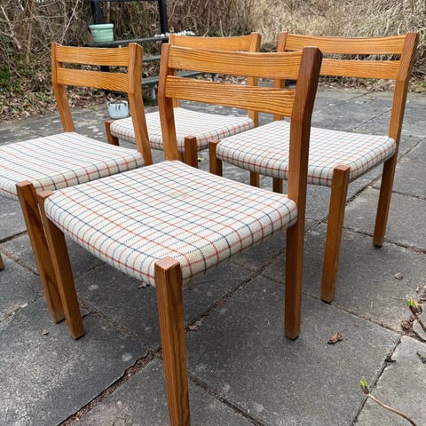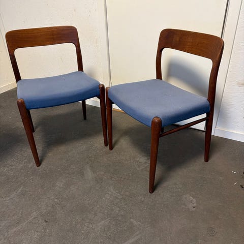 Defekt flet på begge stole - Skal omflettes. Slitage på bemaling.