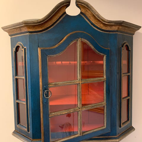 Unikt vægskab med glaslåge og håndmalede detaljer