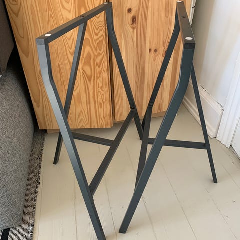 Bordben / bukke fra IKEA i mørkegrå. Velegnet til skrivebord eller til det lille kontor.