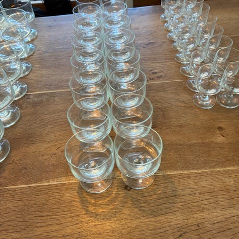7 stk. Holmegaard likørglas i klart glas. Sættet består af små glas på fod med let buet form, velegnet til servering af likør, snaps eller andre stærke drikke. Klassisk, gennemsigtigt design der passer ind i de fleste borddækninger og kan bruges både til hverdag og ved særlige lejligheder.