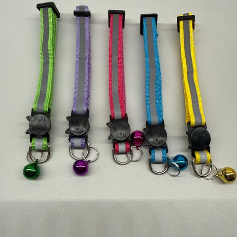Ligger inde med 17 halsbånd til katte/små hunde. Da vi ikke skal have flere killinger, får vi dem ikke brugt. Langt de fleste er ubrugte.