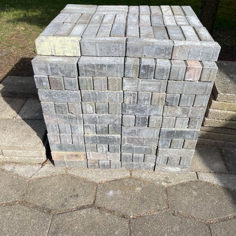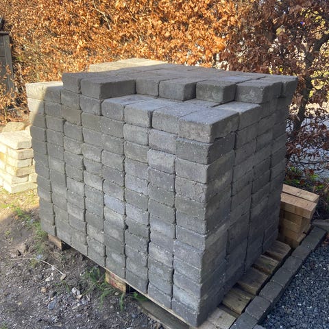 Beton belægningssten i grå nuance. Stenene er velegnede til fx terrasse, gangsti eller andre udendørs belægninger. Rektangulær form og ensartet størrelse, egnet til lægning i forskellige mønstre på faste underlag som sand eller stabilgrus.