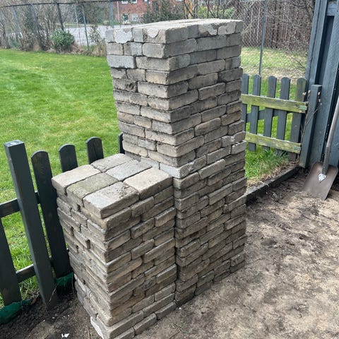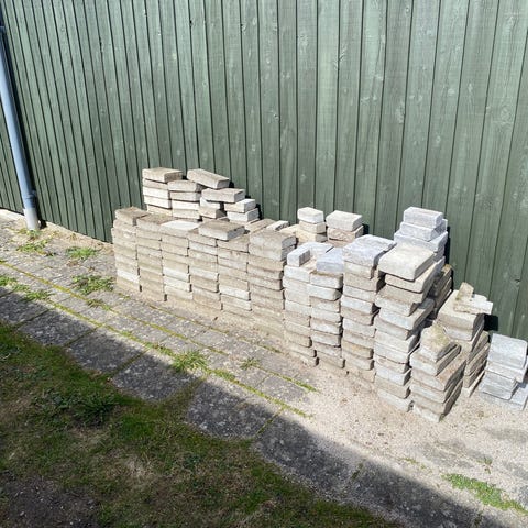 Fine Holmegaards sten fra tidligere terrasse til gratis afhentning efter aftale. Der er ca. 40kvm.