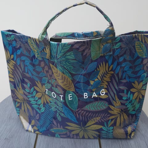 DKNY stof taske til kvinde. Tasken er udført i stof med naturfarvet midterstykke og grønne kanter, bund og hanke. Forsiden har teksten "BE DELICIOUS" broderet i grøn. Velegnet som hverdagstaske, indkøbstaske eller strandtaske med bærehanke til brug over skulder.