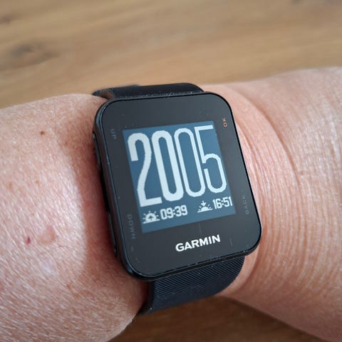 Garmin Approach S44 golfur med GPS og farvedisplay. Uret er designet til golf og viser blandt andet afstande til green og forhindringer. Remmen er i blå silikone, og uret har rund urskive med metalramme. Velegnet til brug på golfbanen med funktioner som afstandsvisning, hul- og banedata samt batteriindikator på skærmen.