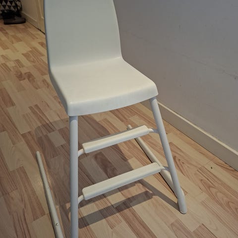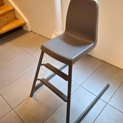 Junior- og højstol. Kan bruges af helt små børn og nemt laves til juniorstol, når de kan sidde selv.