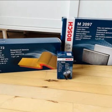 2 stk Hengst E2945LI kabinefilter, 2 stk Hengst H97W07 oliefilter, 2 stk Bosch S3971 luftfilter samt 4 stk NGK BKR5EYA tændrør. Er oprindeligt købt til en toyota yaris p9 modellen.. passer også til andre modeller og andre bilmærker, men det er nok værd at tjekke om disse numre passer til jeres bil. Er du i tvivl så kan du skrive din nummerplade til mig så kan jeg tjekke om det passer. Alt dette har en værdi af 800 kr.