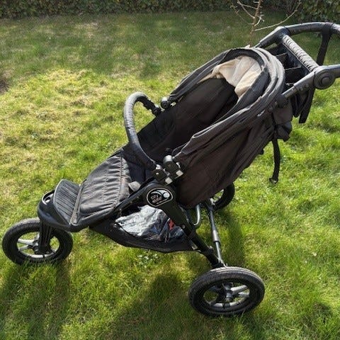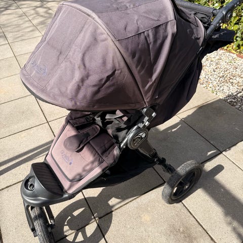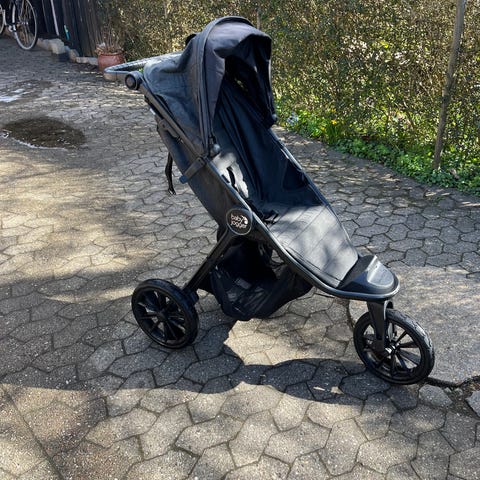 Baby Jogger klapvogn med tre hjul i sort. Vognen har drejeligt forhjul som dog ikke længere kan låses fast, stor varekurv under sædet med brugsspor og justerbart skubbehåndtag. Sædet har sele og frontbøjle samt kaleche med udtræk for ekstra skygge. Rygstøtten kan justeres så barnet kan ligge helt ned. Købt i 2021 og fra røg- og dyrefrit hjem.