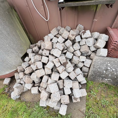 Ca 100stk. De fleste har aldrig ligget. Ca 9x9cm