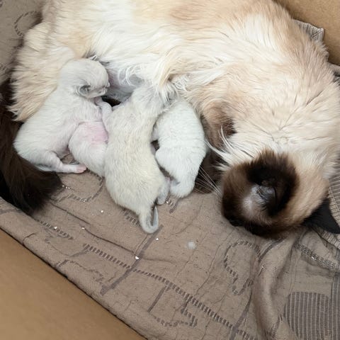 Jeg har 2 dejlige Hellig Birma killinger, der skal finde et nyt hjem. De rejser selvfølgelig først hjemmefra, når de er 12 uger gamle. Hvis køber ønsker det, må de også blive i længere tid. Killingerne er stue opdræt og sælges uden stamtavle. Mor er hellig birma uden stamtavle og far er med stamtavle. Begge er brunmaskede. De færdes frit i huset, så de er godt socialiseret og vant til hverdagens lyde og hund. Inden de rejser hjemmefra, er de ormebehandlet, vaccineret 1. Gang, chippet og registreret samt sundhedstjekket. Der betales 1500 i depositum, som ikke refunderes hvis du som køber springer fra. Der medfølger foder til den første tid og et tæppe der dufter af mor og søskende.