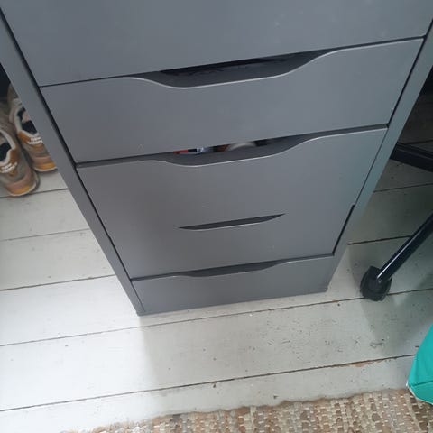 Skuffedarium i metal. Passer perfekt under et skrivebord.