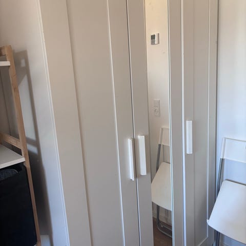 Kom og hent mandag kl 10-11. Så er det dit gratis. Garderobeskab fra jysk. Har aldrig været flyttet. Fejler ikke noget.
