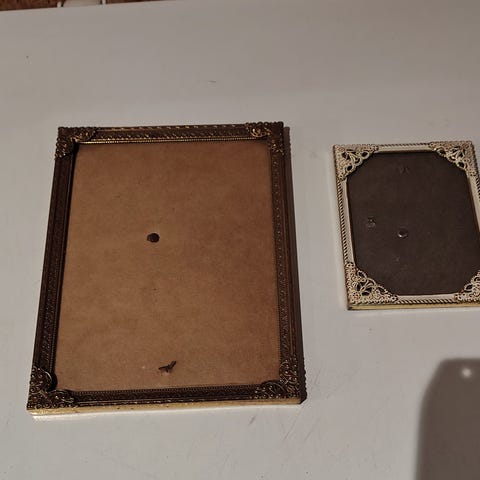 Antikke billedrammer med ornamentik og smukt buet glas