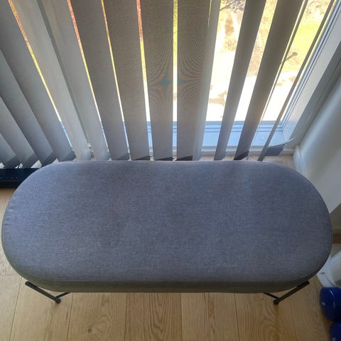 Sort stofbænk med metalben