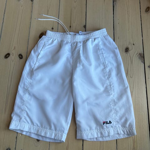 Fila shorts til børn i str. 122/128. Shortsene er blå med elastiklinning og snøre i taljen. Materialet er 100 % polyester. Velegnet som hverdags- eller sportsshorts til børn i den angivne størrelse.