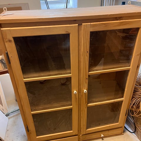 Grøn vitrine i træ.