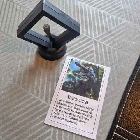 Sælger lidt ud af egen samling , har denne flotte otodus obliquus tand på 6,4cm🙂🙂 otodus obliquus var i tæt familie med megalodon. Super flot til display og det følger selvfølgelig med, plus et lille facts kort 😊 pris 85kr