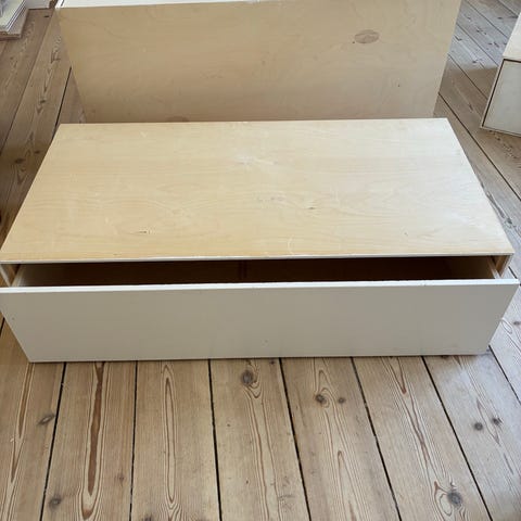 Der er små huller i toppen, så de kan skrues fast på en topplade og bruges som bænk.
