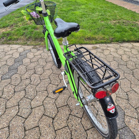 Kildemose pigecykel med 20"hjul. 3-gear. Bagagebærer, cykelkurv foran, kædeskærm, støtteben og lås med to nøgler.
