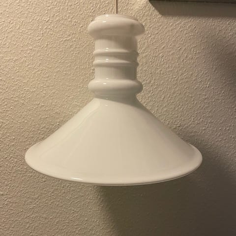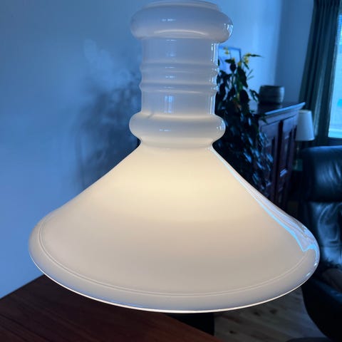 Holmegaard Apotekerpendel pendel i hvidt opalglas, designet af Sidse Werner. Pæn stand, ingen skår.