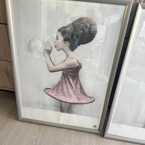 Plakat med kunstmotiv i ramme. Motivet viser et barn i sort-hvid med farverige baggrundsstrøg og teksten "Teach Them Love" på kroppen. Plakaten er indrammet i en enkel, mørk ramme med lys passepartout. Egnet til ophængning i stue, kontor eller andre opholdsrum som vægdekoration.