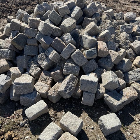 Brosten i granit i grå nuancer. Stenene er til udendørs belægning, f.eks. indkørsel, gårdsplads, stier eller kanter. Granit er et hårdt og slidstærkt naturmateriale, som egner sig til områder med trafik og belastning. Stenene har uregelmæssig overflade og kan lægges i forskellige mønstre alt efter behov.