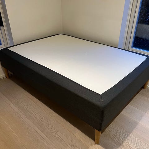 Ilva seng med polstret gavl i sort kunstlæder. Sengen har en høj, buet gavl med knapdetaljer og er betrukket med sort kunstlæder. På billederne ses også et sort natbord med to skuffer og metalgreb. Velegnet til soveværelse med moderne indretning. Størrelsen på senge 140x200 meget pæn og velholdt fejler intet.