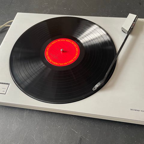 Pladespilleren er testet og virker som den skal. Derudover er den i pæn stand med få aldersrelaterede brugsspor, dog har den lidt skrammer på smudslåg og er lidt løs i metalpladen.