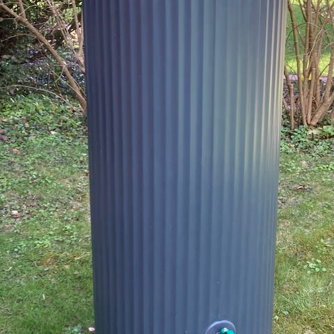 Regnvands tønde beholder regnvandstønde. Kan tilsluttes tagrende. Diskret og uden særlige brugstegn. Sælges grundet renovering. Nypris 2579 dkr. afhentning i Gilleleje.. Garantia Elegance regnvandstønde med kapacitet på 400 liter. Fremstillet i plast og udført i grå farve. Udstyret med aftapningshane i bunden til nem udtagning af vand. Velegnet til opsamling og opbevaring af regnvand i haven via tilslutning til nedløbsrør.