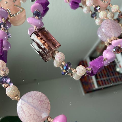 den lilla halskæde med forskellige krystaller