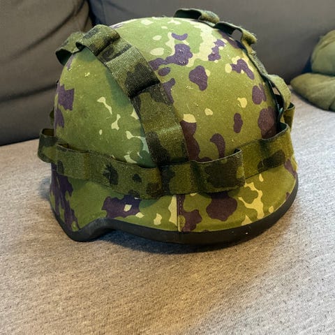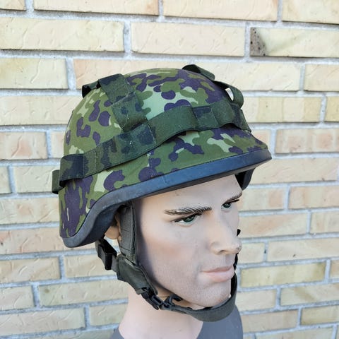 Model Gallet combat helmet i kevlar med M84 camo overtræk.
