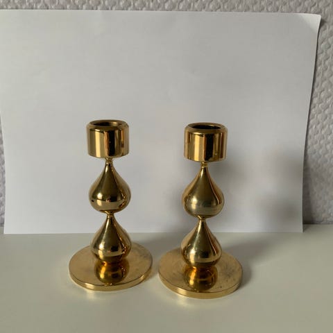 To meget velholdte Asmussen dråbelysestager med guldbelægning sælges til fornuftig pris.